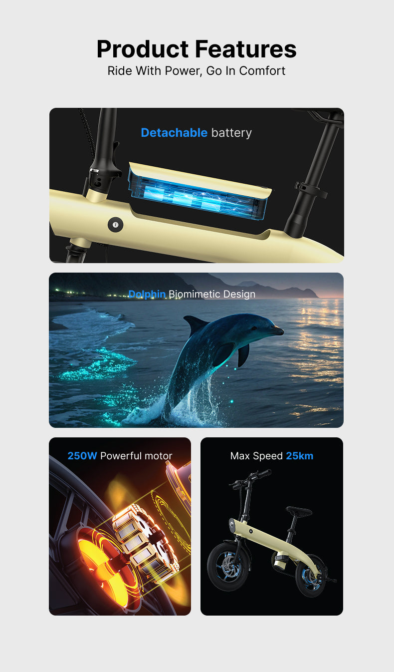 14" Aluminum Folding E-Bike: 36V 250W Rear Hub Motor, 3-Speed, Lightweight Lithium Battery Electric Bicycle
